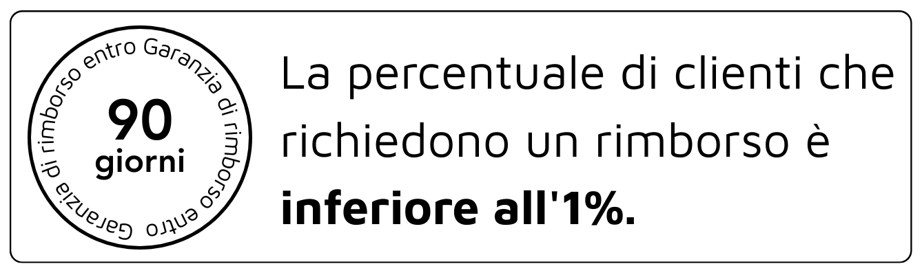 Per questo motivo, offriamo una garanzia senza rischi di 30 giorni. Se non sei completamente soddisfatto, ti rimborseremo l'intero importo in linea con la nostra politica di reso. Prova senza preoccupazioni e scopri la differenza!